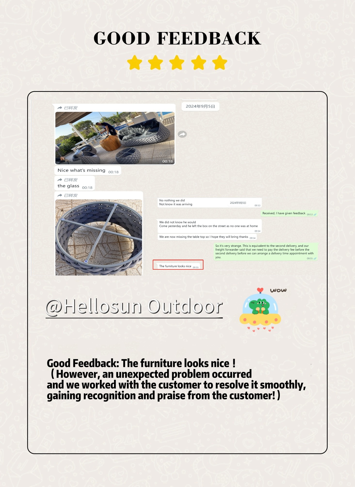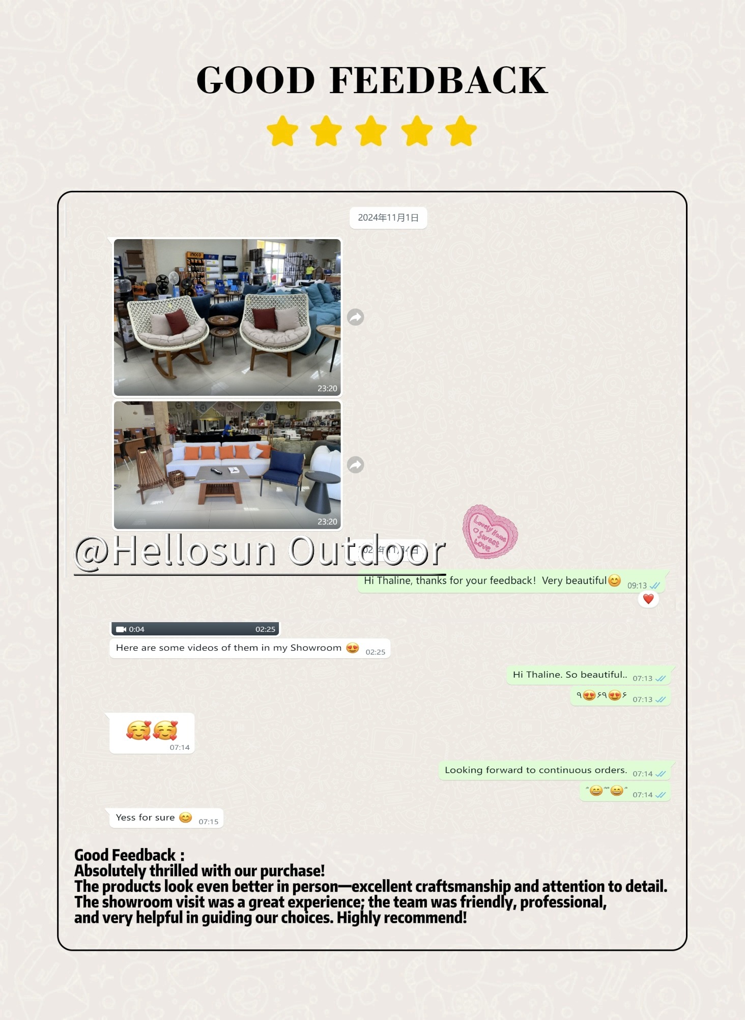 Website China outdoor furniture factory is well known for producing high-quality outdoor furniture. The company focuses on innovative and environmentally friendly designs, using materials such as aluminum, stainless steel and synthetic wicker to make high quality swing chair, outdoor sofa, chaise lounge and dining furniture. HELLOSUN furniture is exported all over the world and has become the first choice for consumers seeking stylish outdoor furniture.。