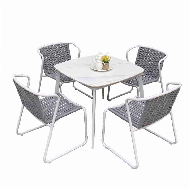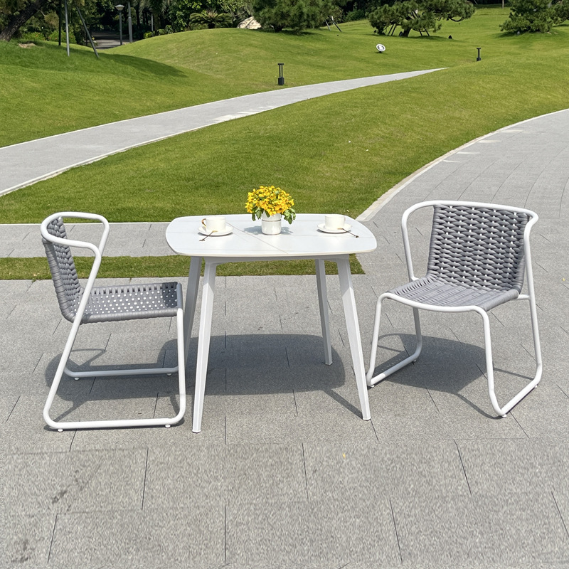 The materials resist UV rays, water, and fading, ensuring the Rope Dining Set maintains its premium appearance over time. The sturdy frame guarantees structural stability even under frequent commercial use.