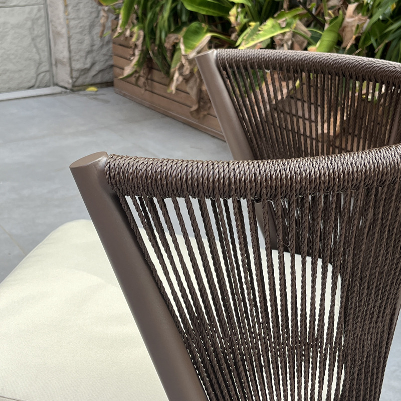 Kury designs this Rope Dining Set for commercial and residential outdoor dining spaces, including hotel terraces, resorts, patios, gardens, and private villas. The set features a durable powder-coated aluminum frame combined with high-quality outdoor rope surfaces, providing strength, stability, and excellent weather resistance.