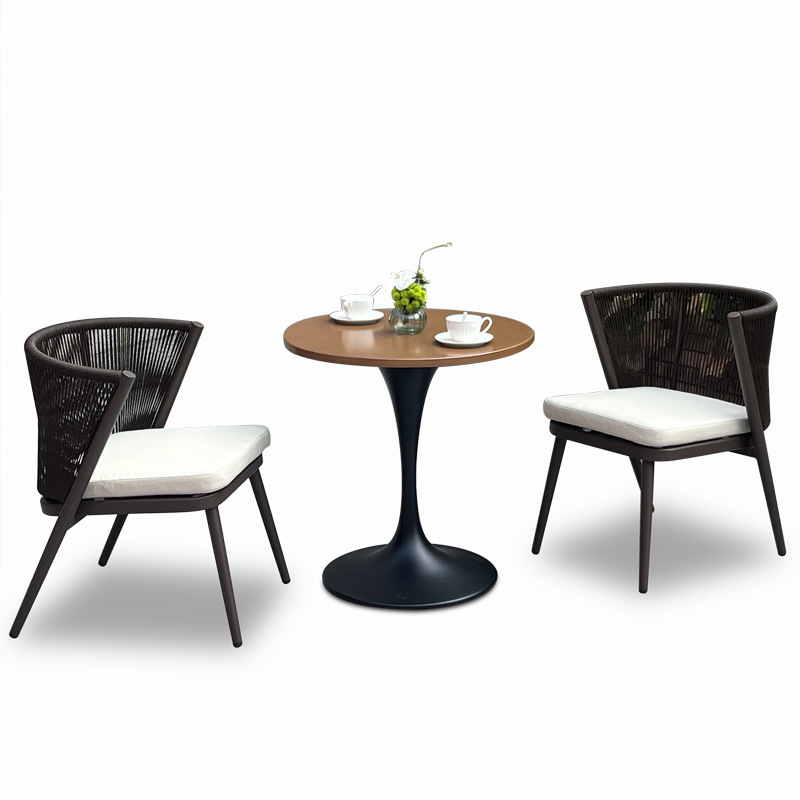 The materials resist UV rays, water, and fading, ensuring the Rope Dining Set maintains its premium appearance over time. The sturdy frame guarantees structural stability even under frequent commercial use.