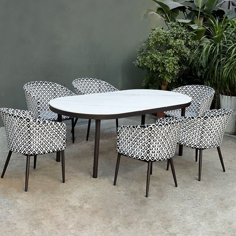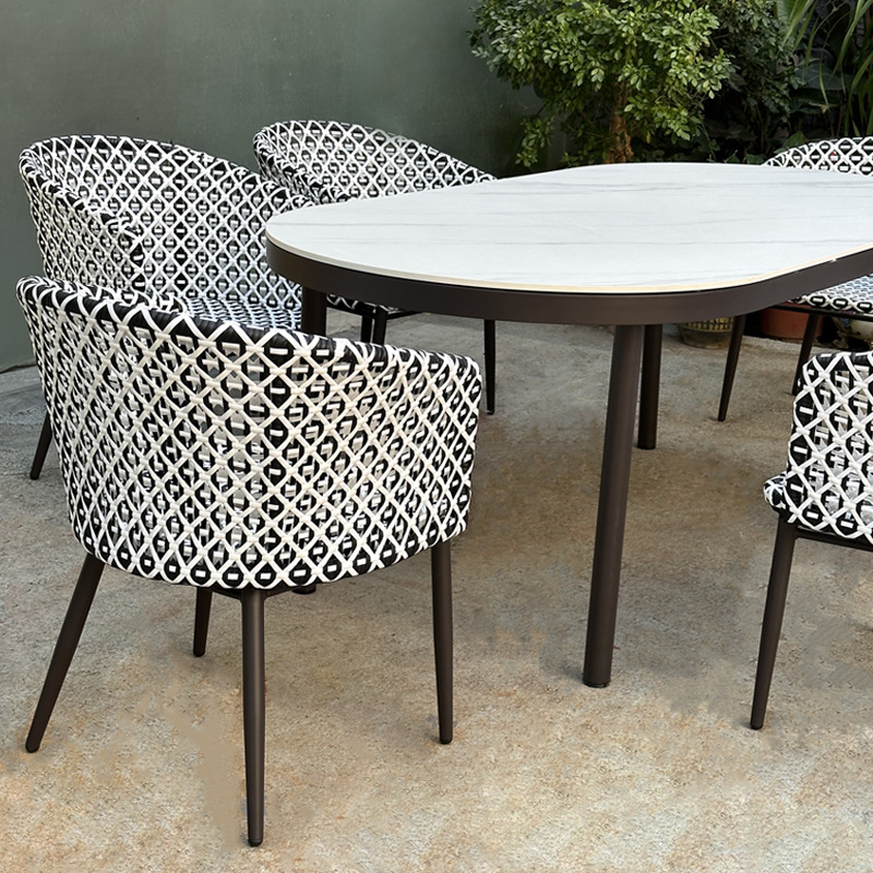 The materials resist UV rays, water, and fading, ensuring the Rope Dining Set maintains its premium appearance over time. The sturdy frame guarantees structural stability even under frequent commercial use.