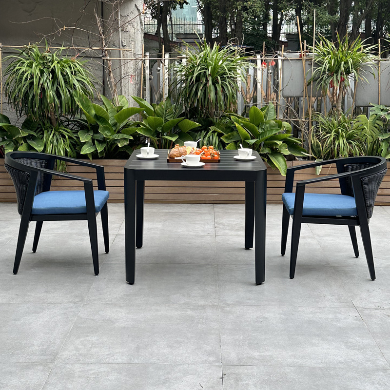 Kury designs this Rope Dining Set for commercial and residential outdoor dining spaces, including hotel terraces, resorts, patios, gardens, and private villas. The set features a durable powder-coated aluminum frame combined with high-quality outdoor rope surfaces, providing strength, stability, and excellent weather resistance.