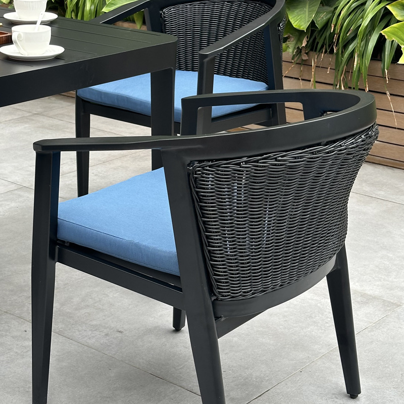 The ergonomic design supports the body and offers comfortable seating for long dining sessions. Water-resistant cushions enhance comfort, making it ideal for both casual and formal outdoor meals. The lightweight yet sturdy design allows businesses to arrange multiple units efficiently for large hospitality projects or bulk orders.