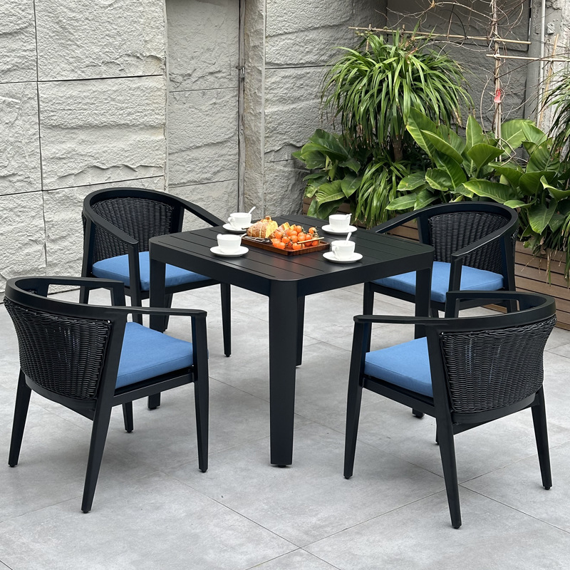 The materials resist UV rays, water, and fading, ensuring the Rope Dining Set maintains its premium appearance over time. The sturdy frame guarantees structural stability even under frequent commercial use.