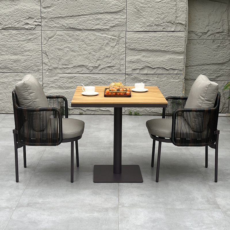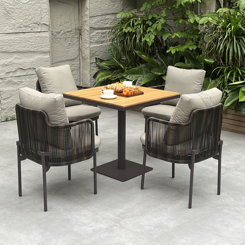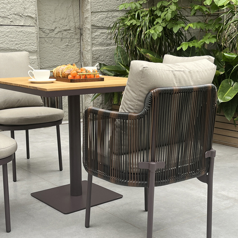 The materials resist UV rays, water, and fading, ensuring the Rope Dining Set maintains its premium appearance over time. The sturdy frame guarantees structural stability even under frequent commercial use.