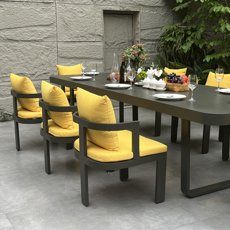 The ergonomic design supports the body and offers comfortable seating for long dining sessions. Water-resistant cushions enhance comfort, making it ideal for both casual and formal outdoor meals. The lightweight yet sturdy design allows businesses to arrange multiple units efficiently for large hospitality projects or bulk orders.