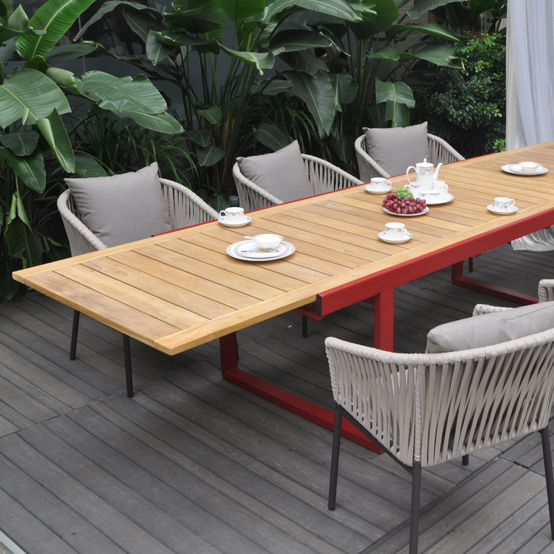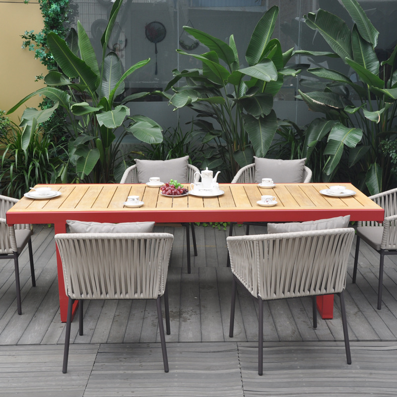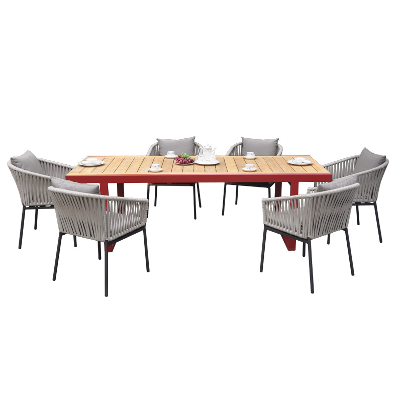 The materials resist UV rays, water, and fading, ensuring the Rope Dining Set maintains its premium appearance over time. The sturdy frame guarantees structural stability even under frequent commercial use.