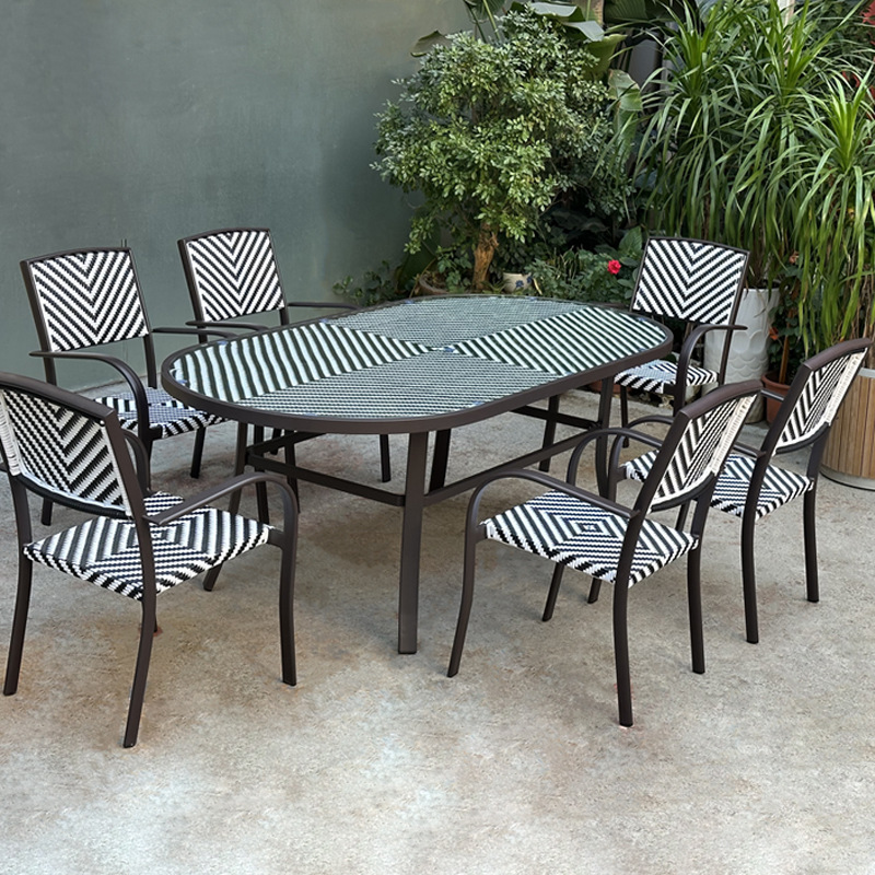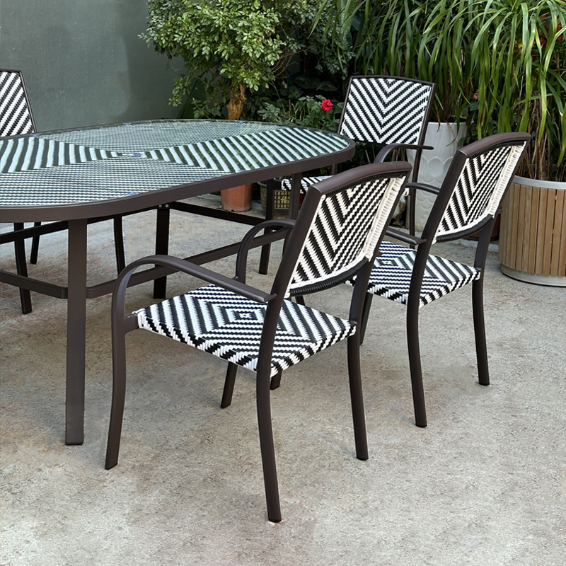 The materials resist UV rays, water, and fading, ensuring the Rope Dining Set maintains its premium appearance over time. The sturdy frame guarantees structural stability even under frequent commercial use.