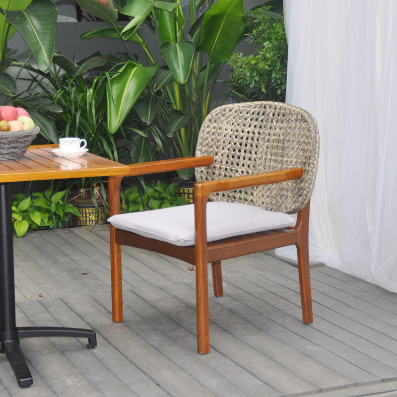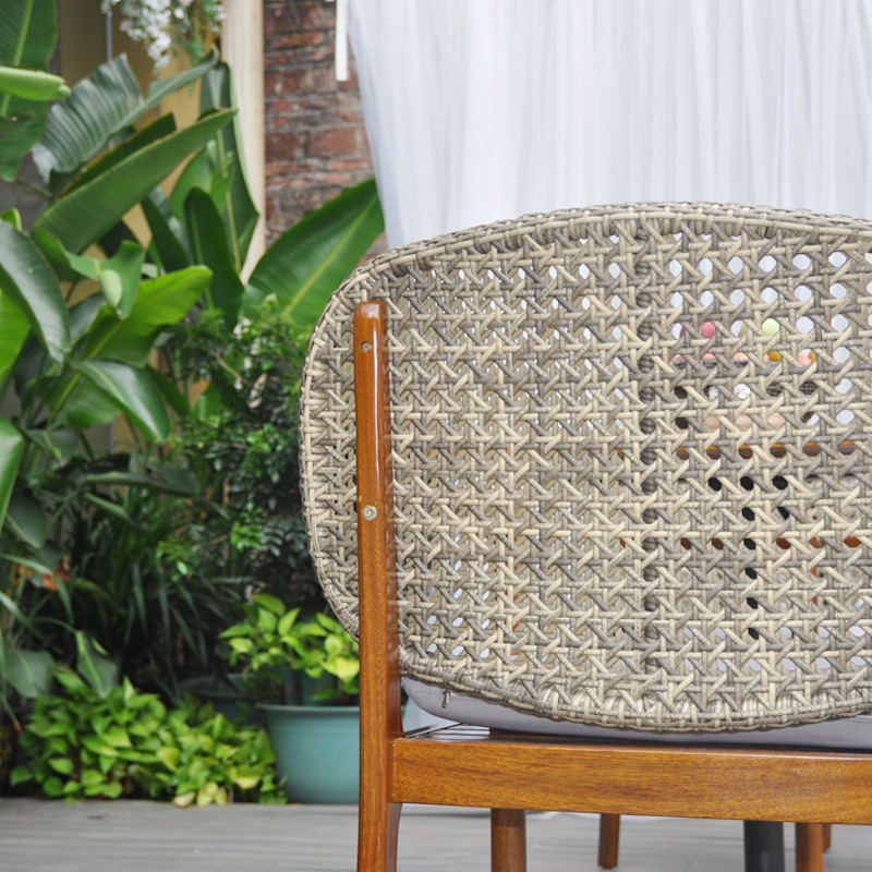The ergonomic design supports the body and offers comfortable seating for long dining sessions. Water-resistant cushions enhance comfort, making it ideal for both casual and formal outdoor meals. The lightweight yet sturdy design allows businesses to arrange multiple units efficiently for large hospitality projects or bulk orders.